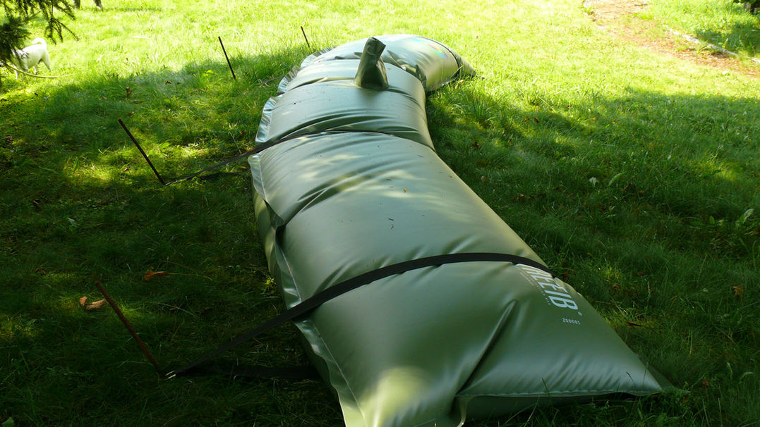 Be aware that a bag filled with 1500 litres of water weighs 1.5 tons, which is the weight of a medium-sized car. If a bag of this weight falls down a slope, it can cause serious injuries to anybody in the way. Therefore, it is important to pay thorough attention to the anchoring, and make sure the anchoring pins are securely fitted as well.